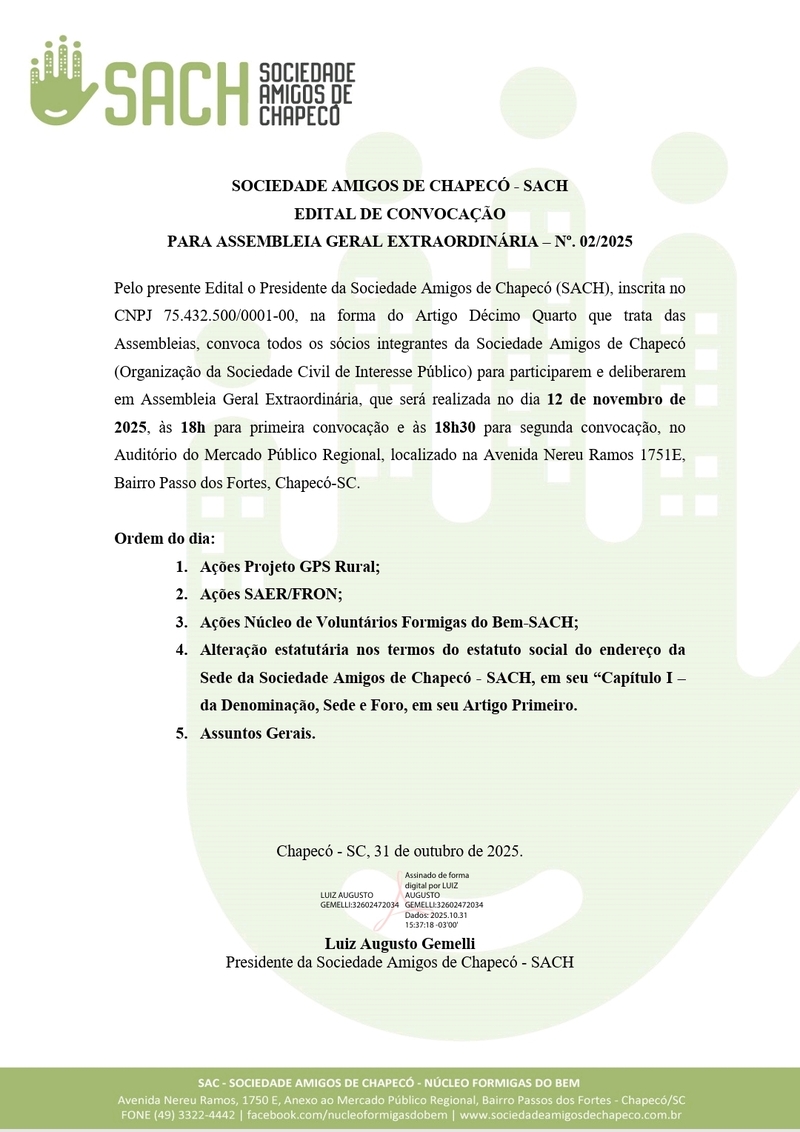 EDITAL DE CONVOCAÇÃO PARA ASSEMBLEIA GERAL EXTRAORDINÁRIA – Nº. 02/2025